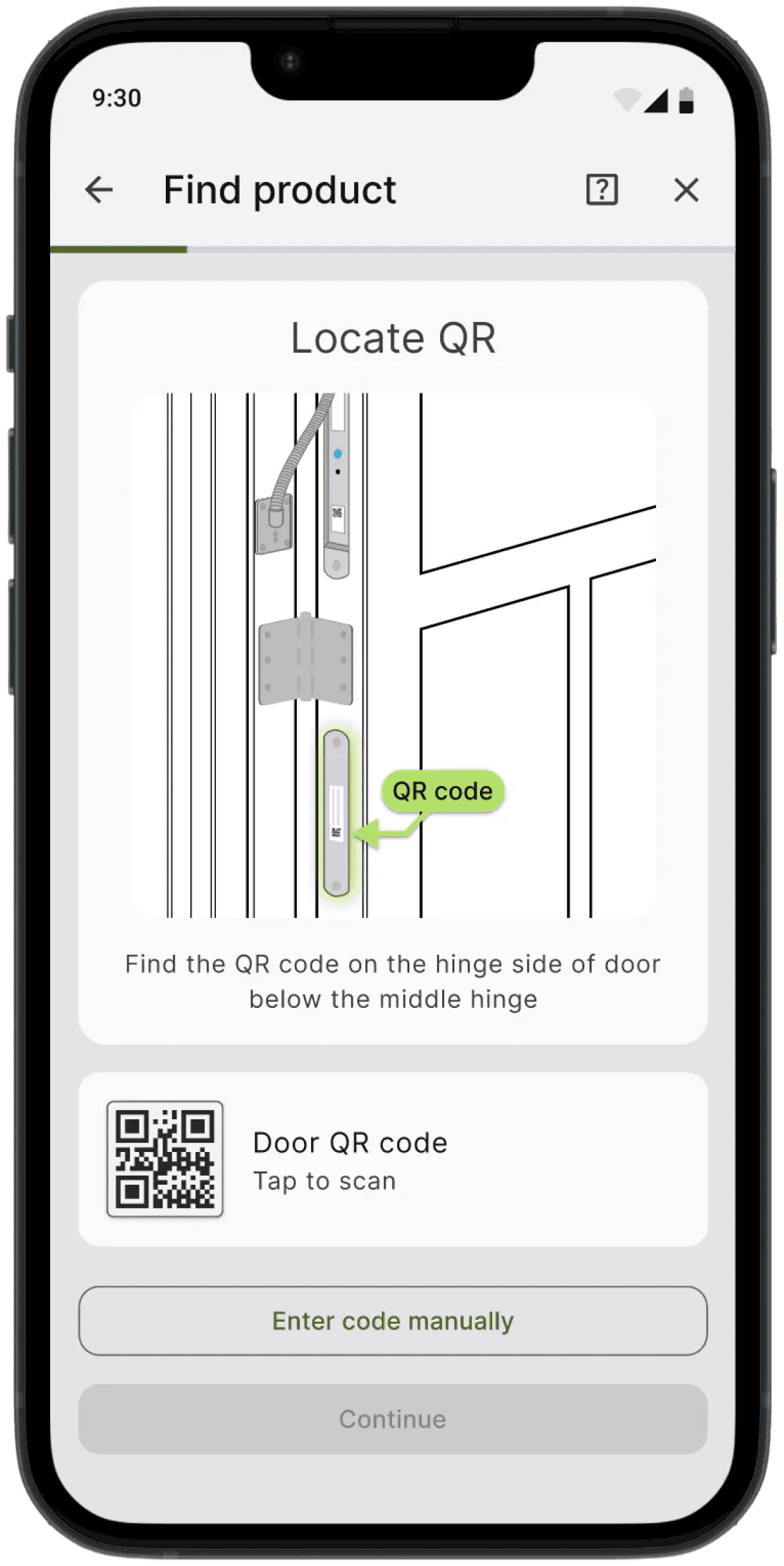 Lots of support ticket comes from the frustration that user cannot find QR code on the door hinge without a image.