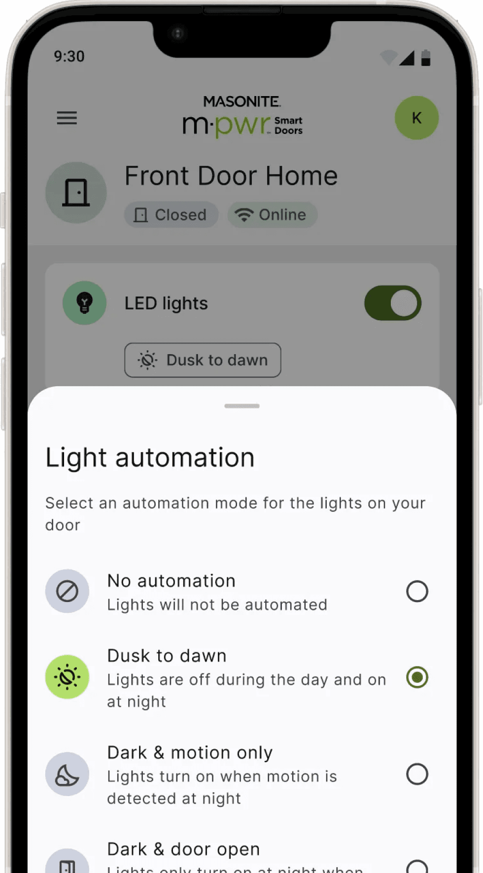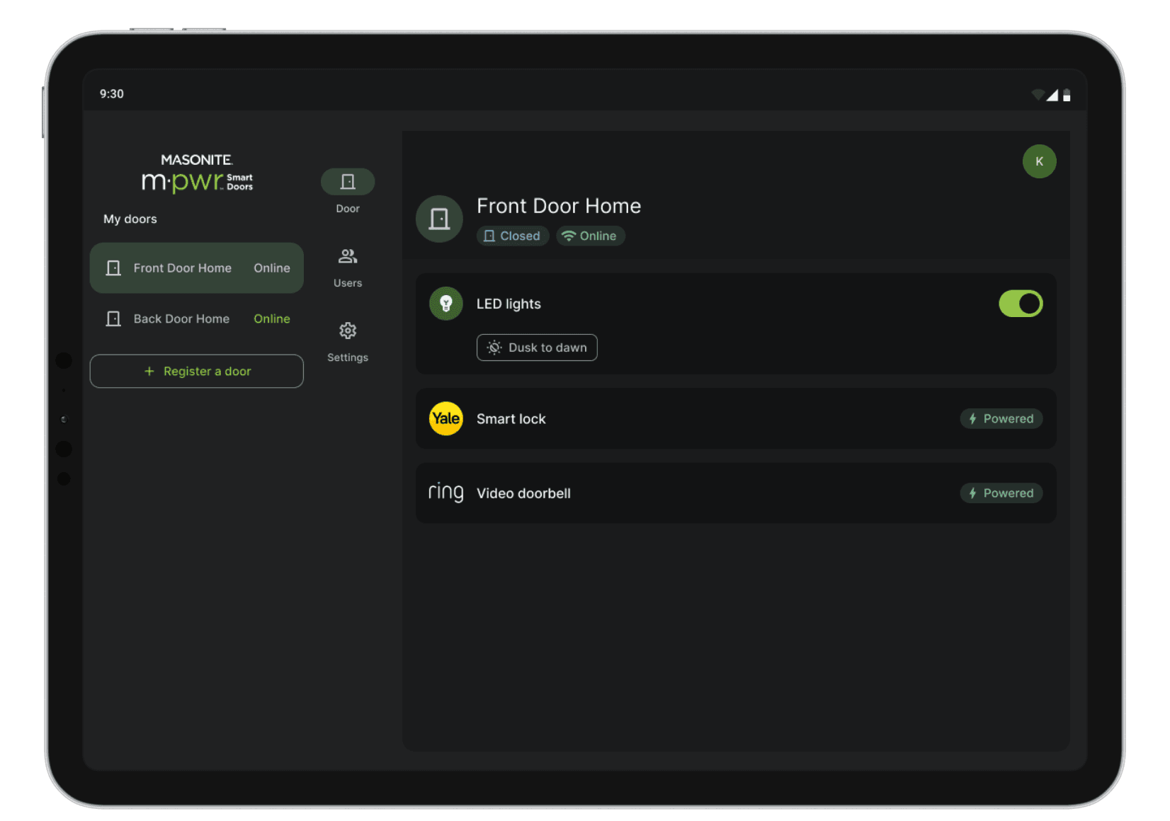 M-pwr Door is the first residential doors integrating power and smart home features. In this project, I redesigned the onboarding user flow to register the Masonite’s M-Pwr Smart Doors on the App. By creating step-by-step guide walkthroughs and integrating dark mode on the App, I delivered a frictionless onboarding experience for users to set up M-pwr door and thus enable all smart home features.